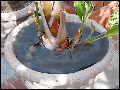 Instead, we will beautify the pot with FireGlass. We cut some grass cloth and covered the dirt with it.